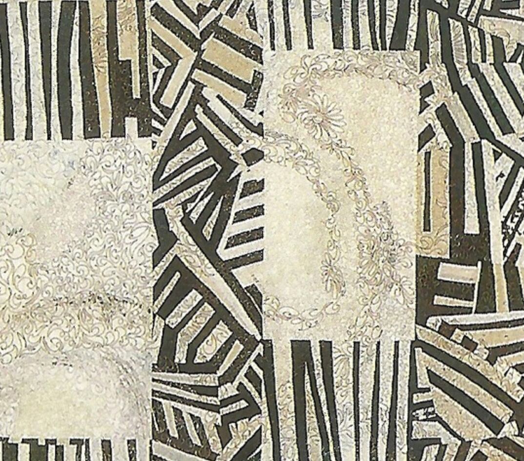 This one-of-a-kind artwork contrasts two different materials and expressions. The left side, made with silk and cotton, features soft, curving stitches, while the right side, created with handmade Japanese paper, is defined by straight, linear quilting. Both are finished with free-motion machine stitching, creating a quiet harmony between differing textures and forms. The result is a serene balance—an elegant dialogue between softness and structure.